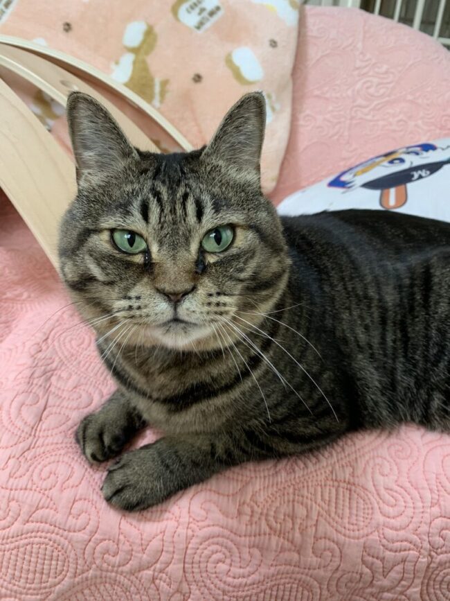 こんにちは、副院長の黒岩夏美です😊☀ 今回は我が家の大事なメンバーのご紹介です🌟 もともとそれぞれが愛犬家だった私たちですが、今は猫ちゃんが1匹います😸 名前はスウィーピー、キジトラの7歳女の子です🎀 名前の由来は、院長…